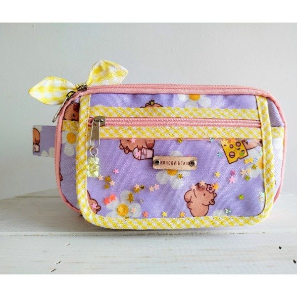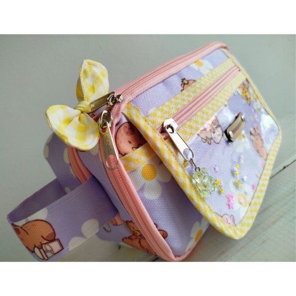 Viene con un moñito en color y estampado surtido que decora uno de los cierres.