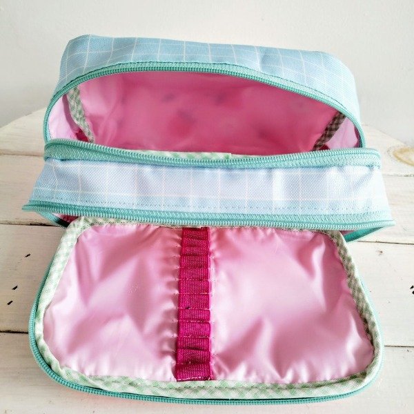 2 cierres: uno con un bolsillo interno con Red y compartimento con elástico para 12 lápices