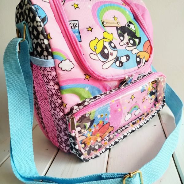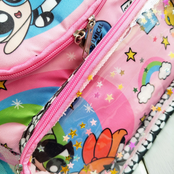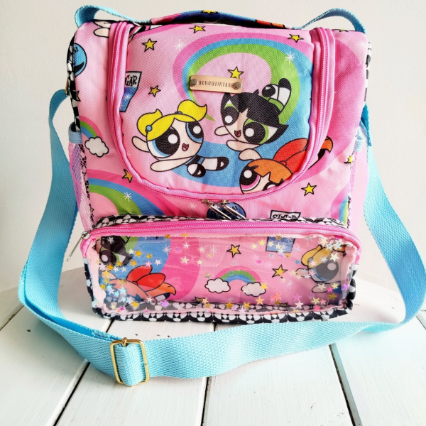 Diseño: Lunchera con solapa con cierre, bolsillo delantero en cristal, bolsillos laterales en red biyonet en color, interior forrado y con aislante térmico