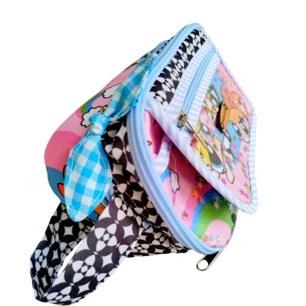 Viene con un moñito en color y estampado surtido que decora uno de los cierres.